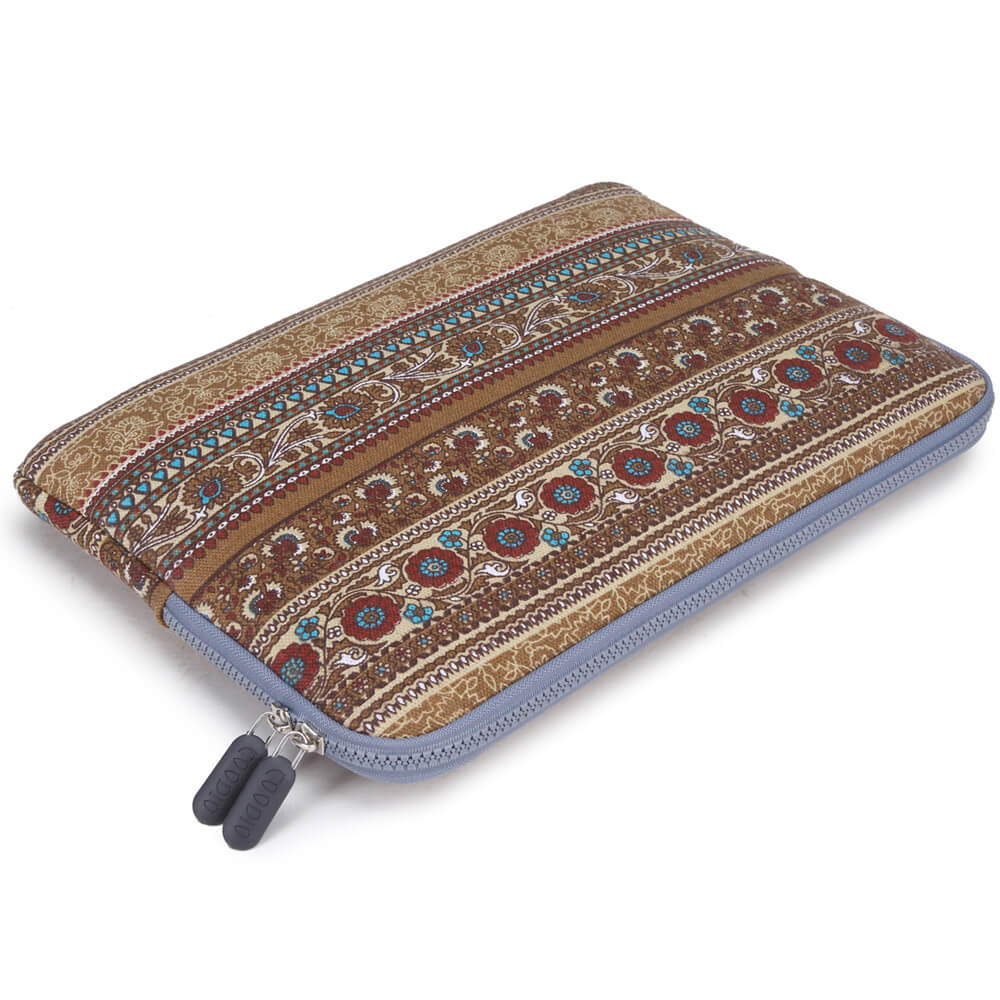 Explore our vibrant bohemian laptop sleeves, crafted from premium canvas and composite neoprene, designed for style and protection.